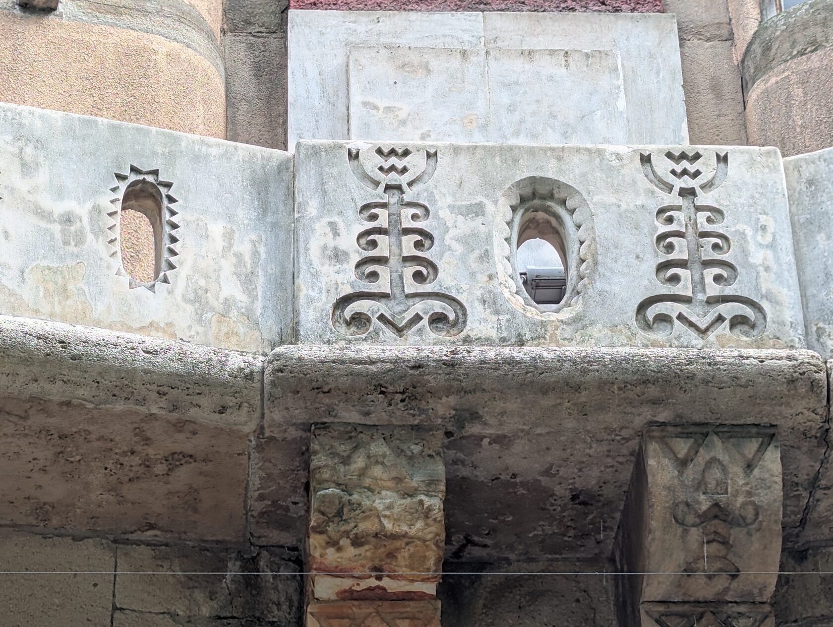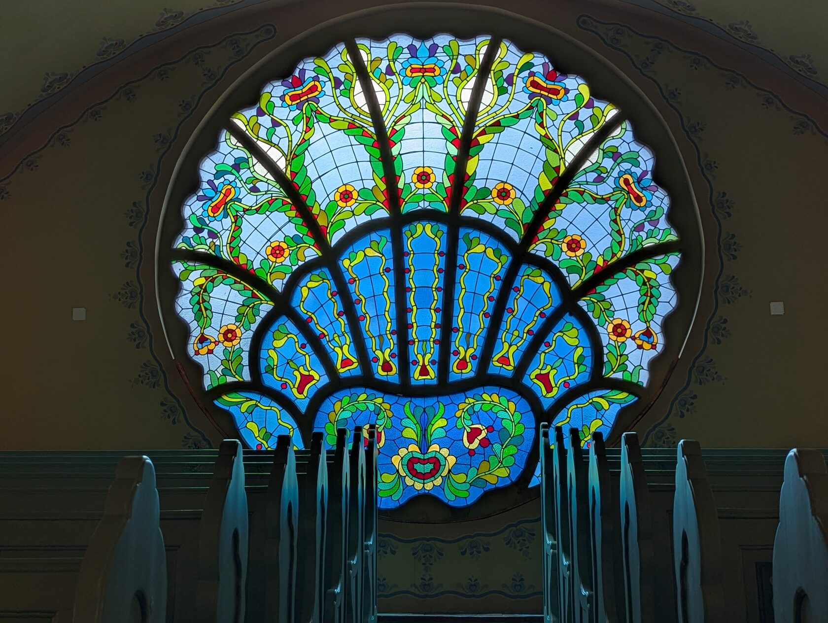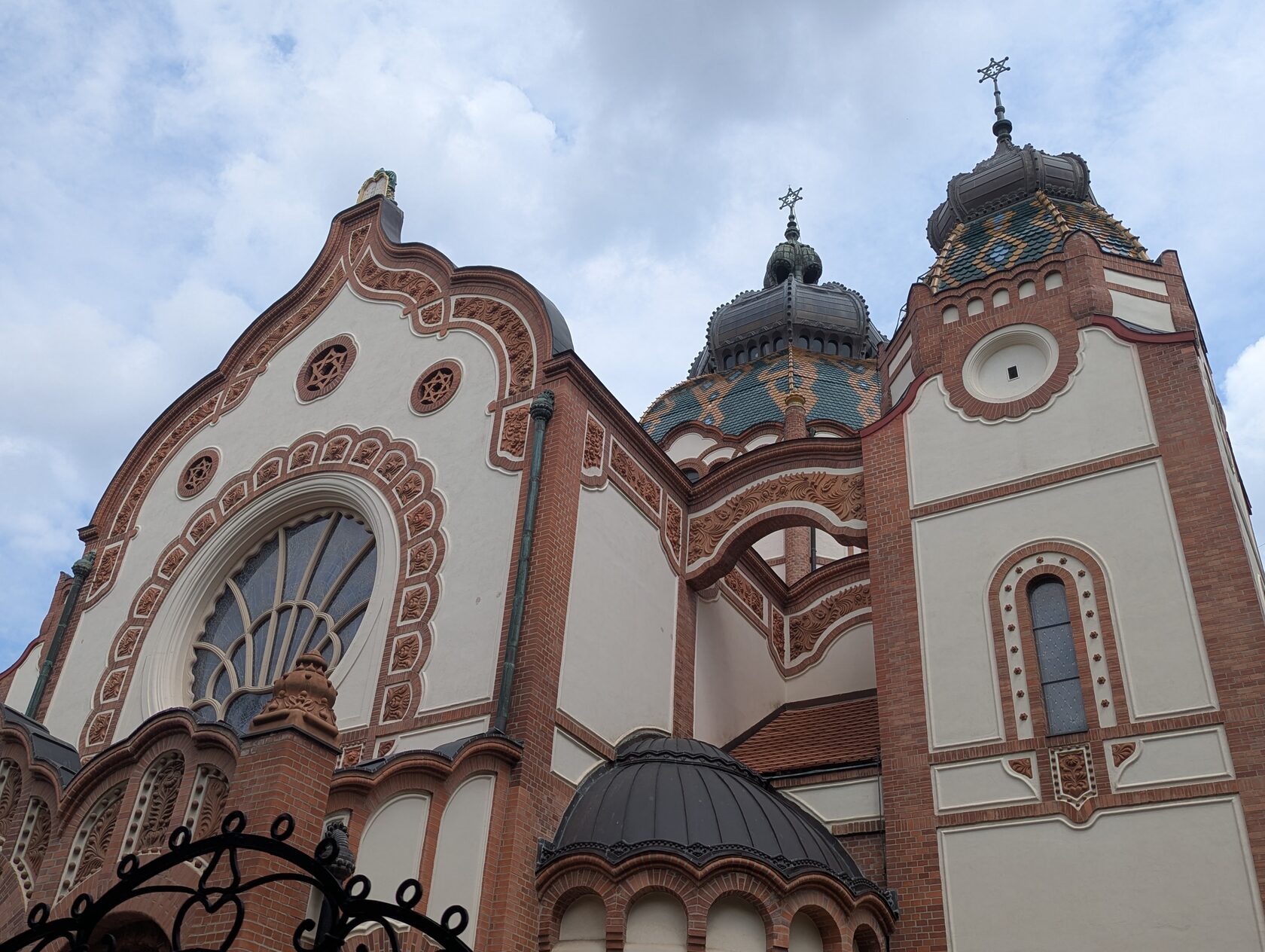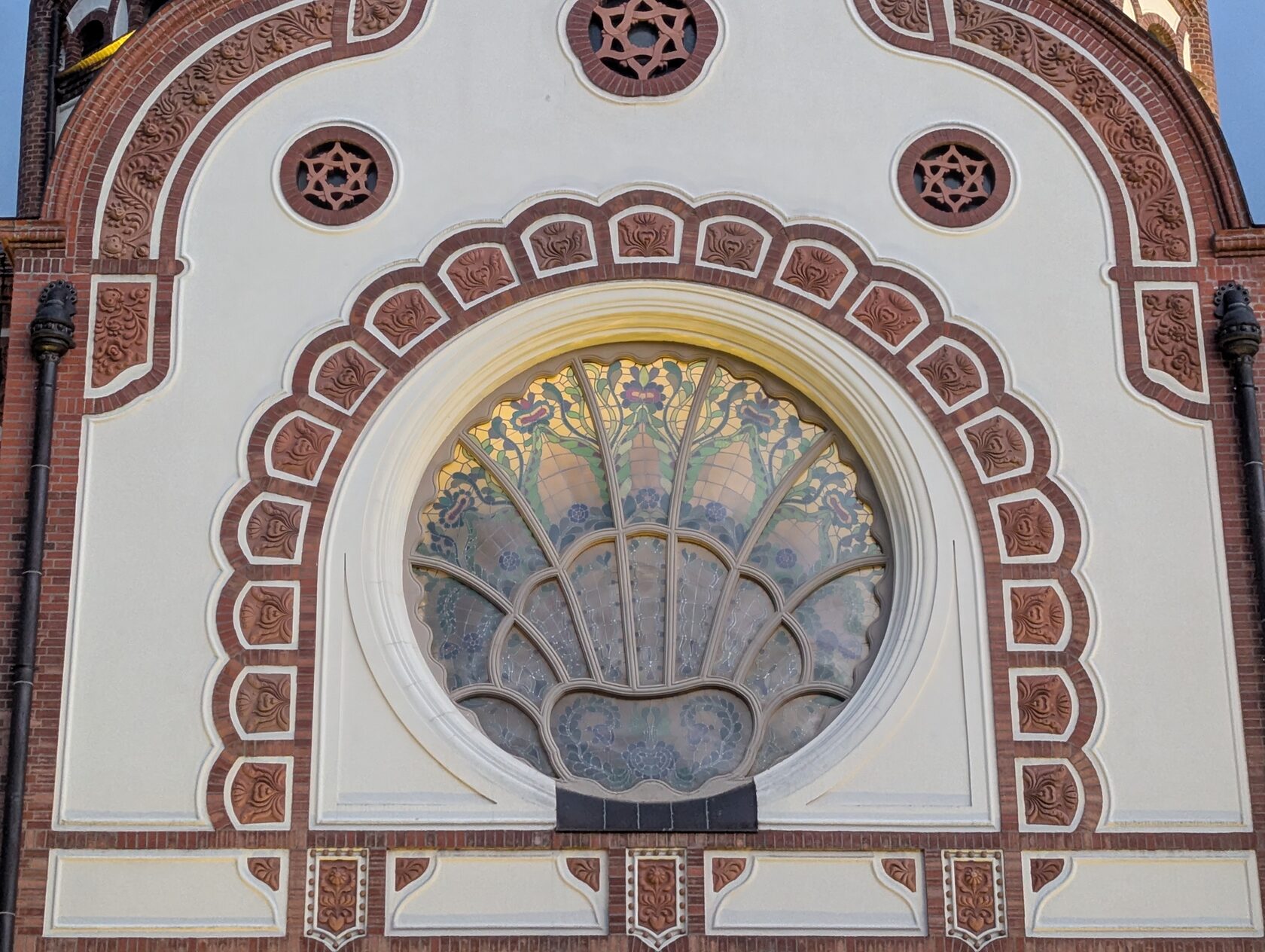 Вы видите, это творческое соединение иудейской символики, форм православного храма, почти католической розы, модерновых мотивов и линий, венгерско-трансильванских растительных узоров....
