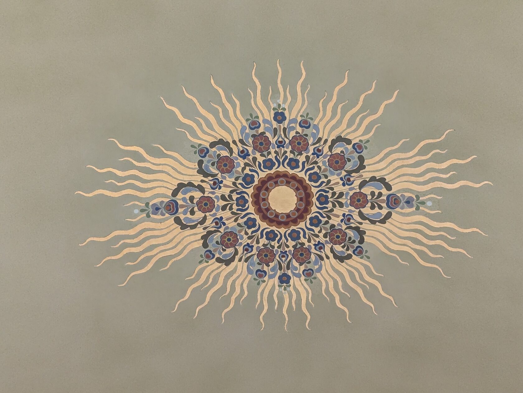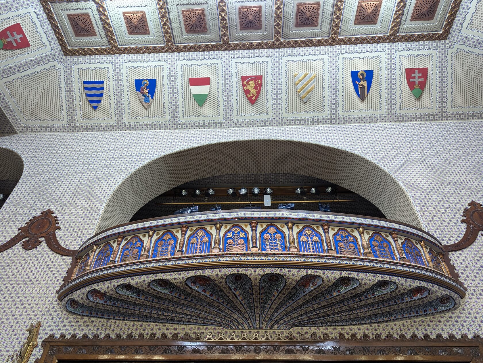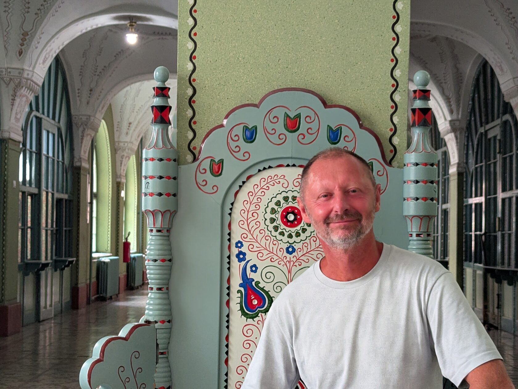 И главное для меня здесь — синтез: архитектура + живопись + прикладное искусство. Венгерский фольклор (цветы, листья, «павлиньи» мотивы) прошит через керамику, ковку, дерево, латунные детали, светильники.