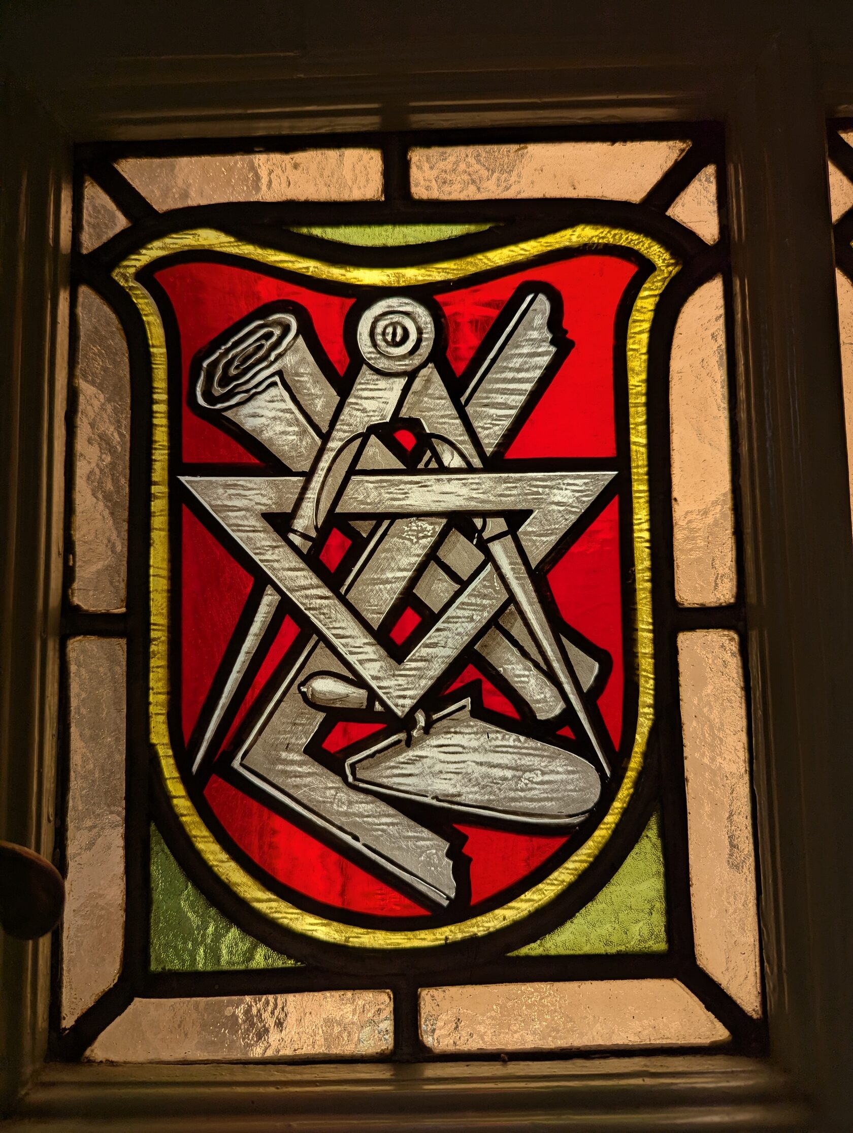 Так как архитекторы Камор и Якобс были масонами, то отследил один из масонских символов на одном из витражей