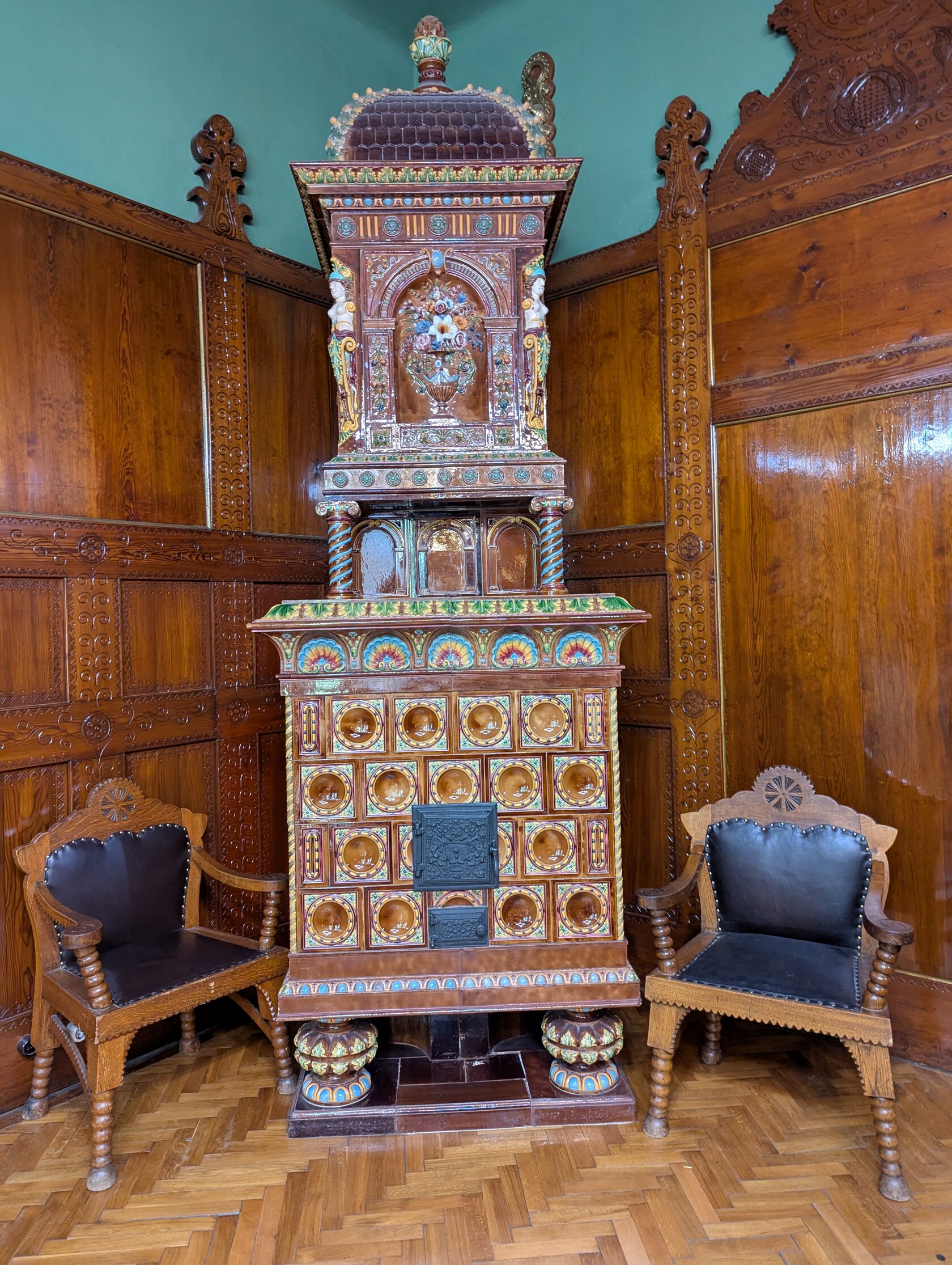 Здесь же такая нарядная печка из венгерского города Печ