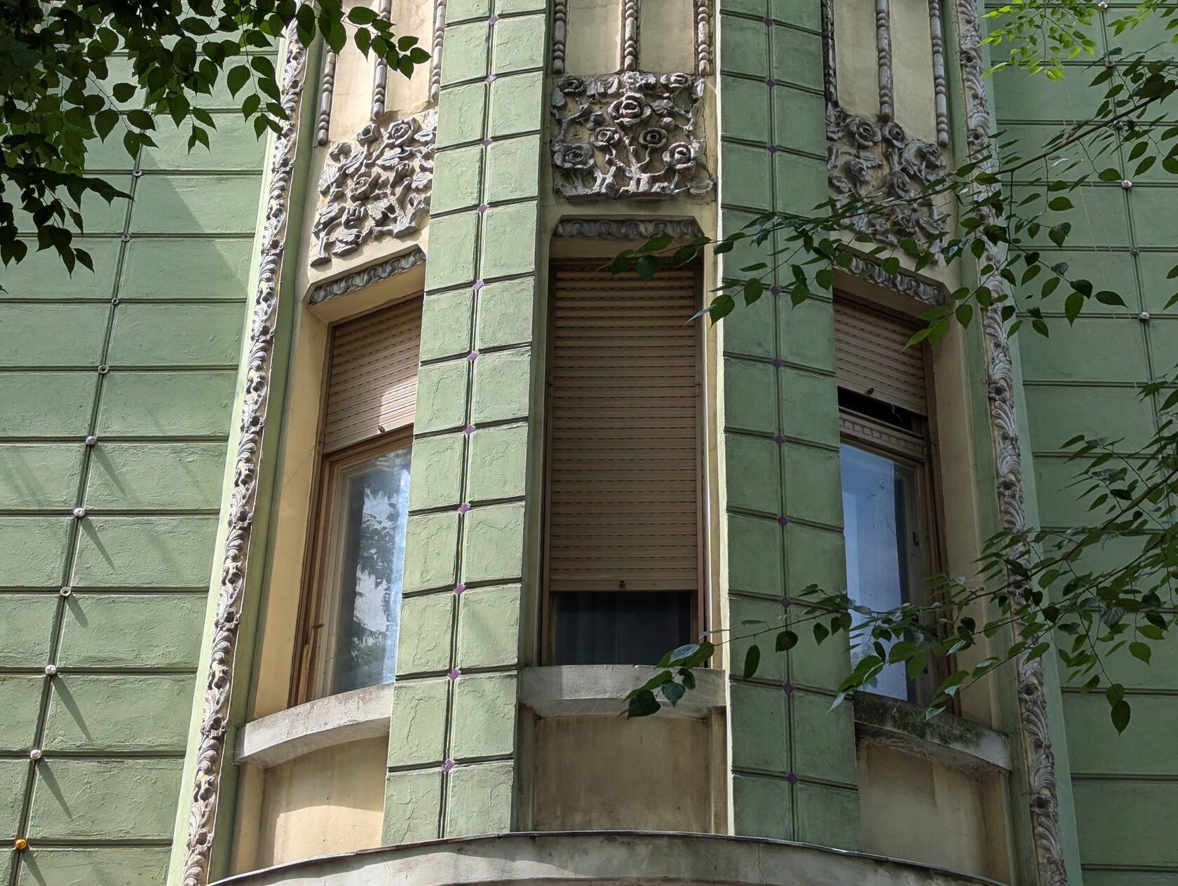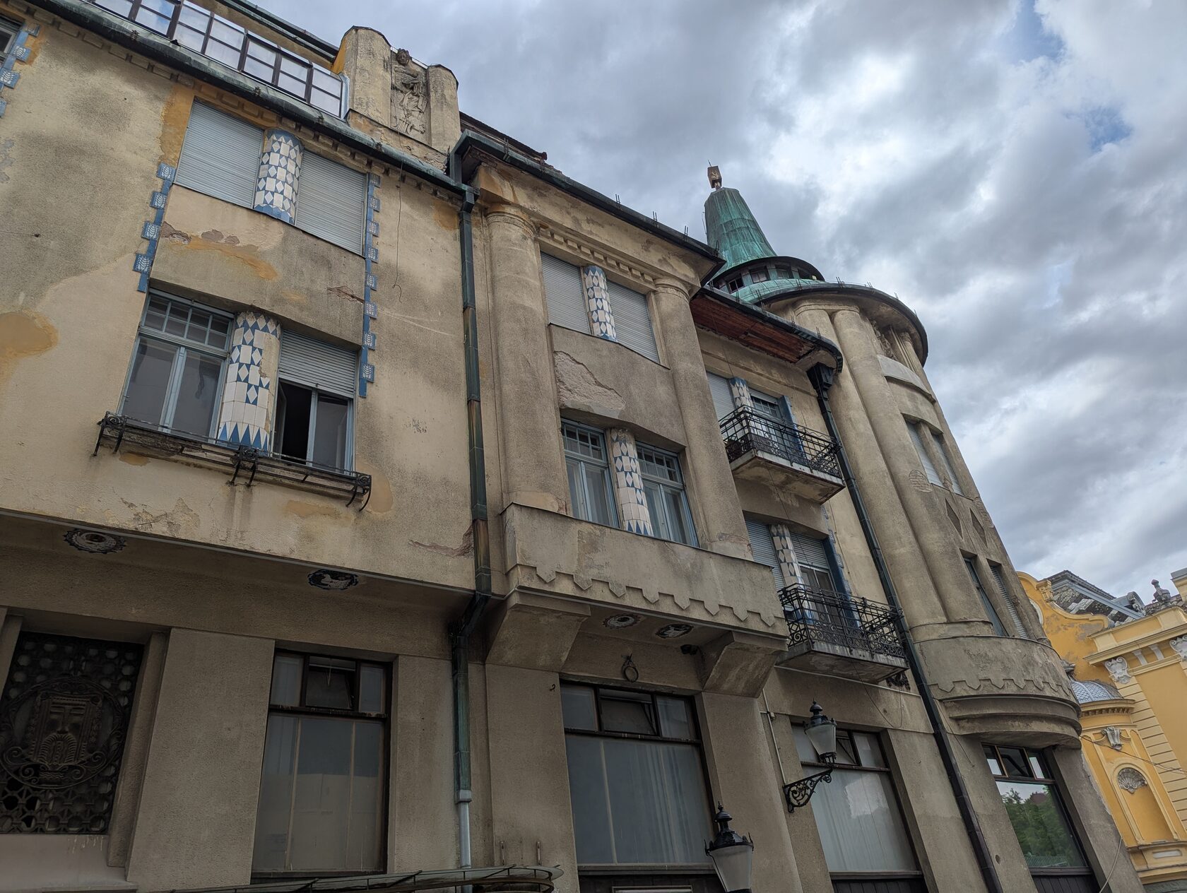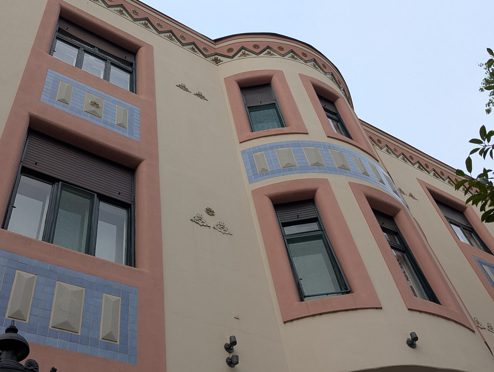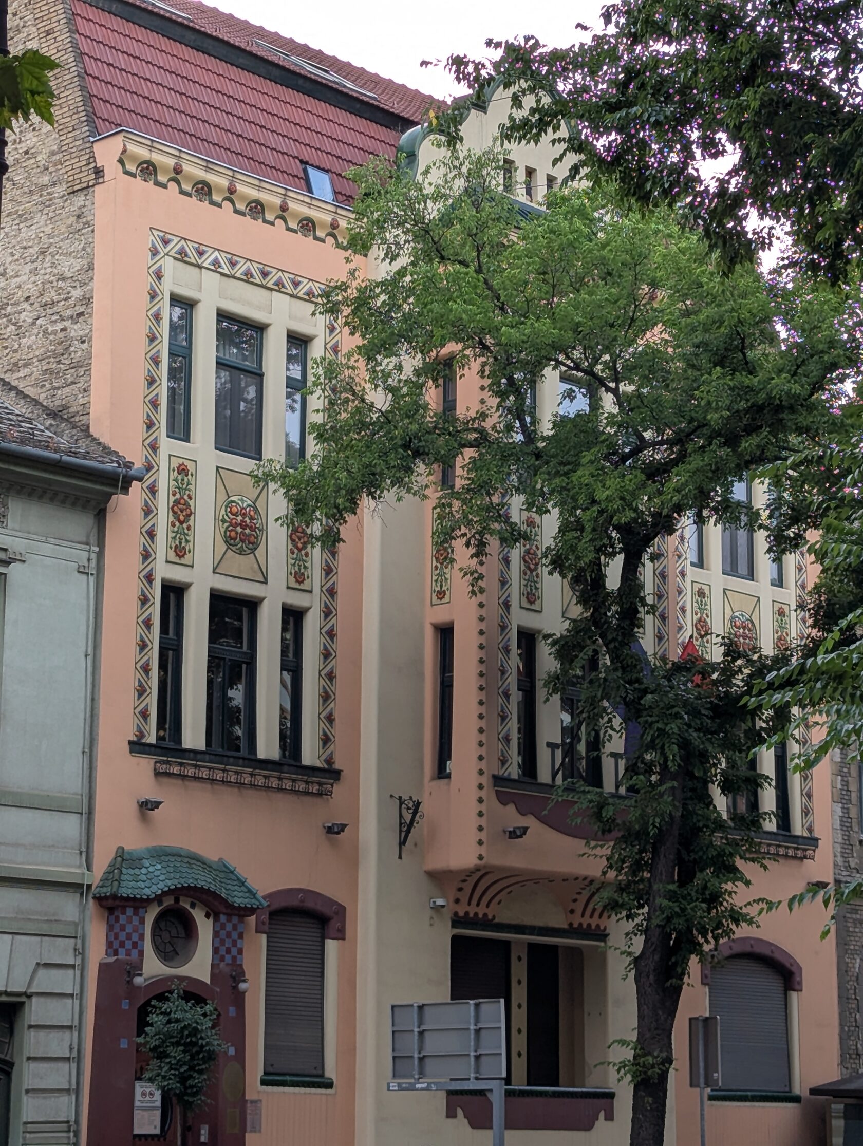 Так как дом является одним из лучших образцов венгерской сецессии, то я не мог с вами не поделиться. Яркие краски, стилизованные изображения цветов и растений на декоративных элементах из Жолнаи керамики, которая здесь популярна и использовалась при создании многих описанных мной зданий - снова модерн с венгерскими народными мотивами.