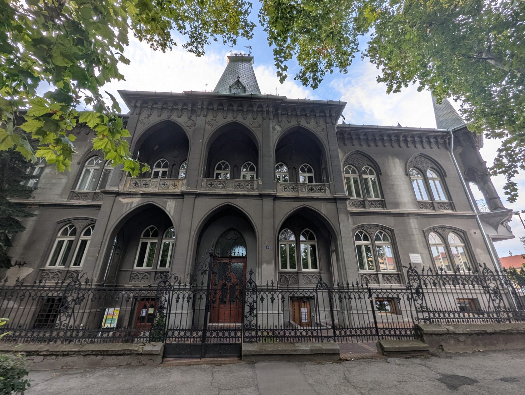 Есть несколько зданий, где встретились неоготика или неоренессанс и сецессион.