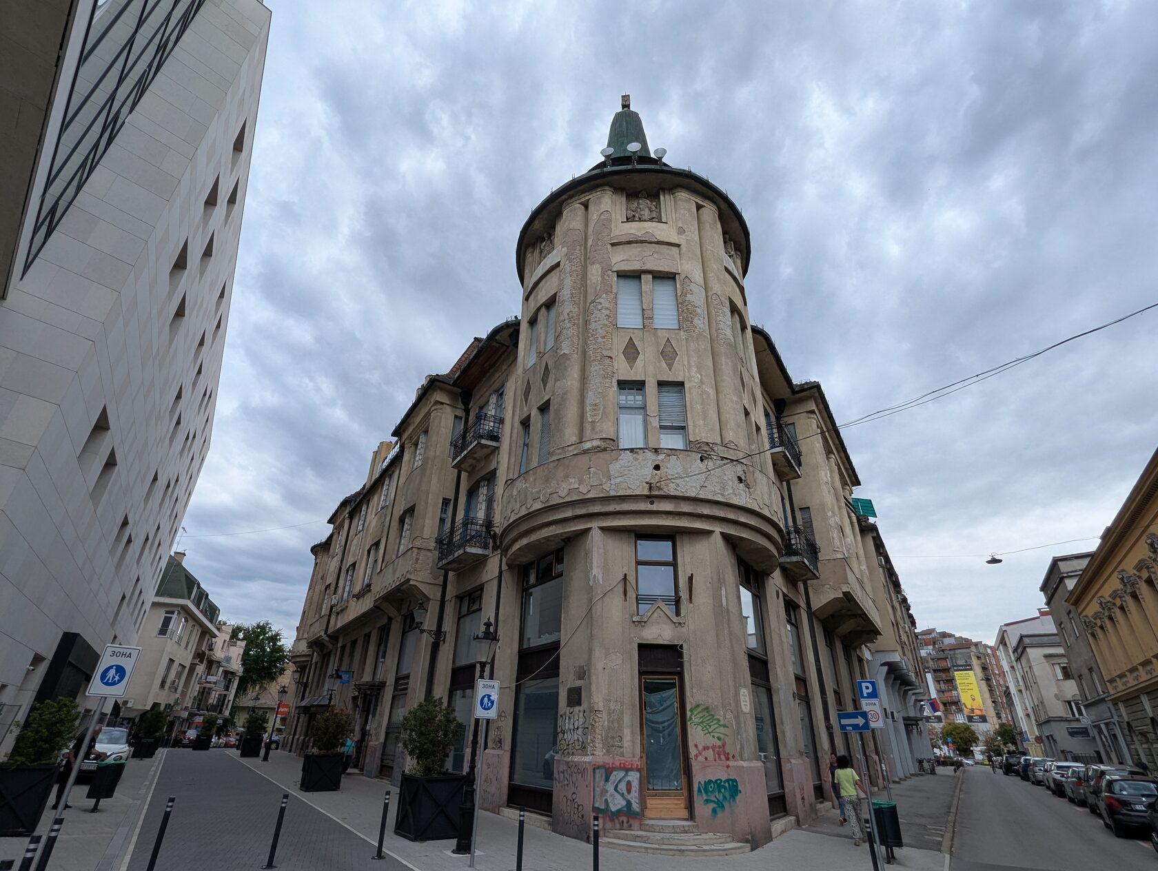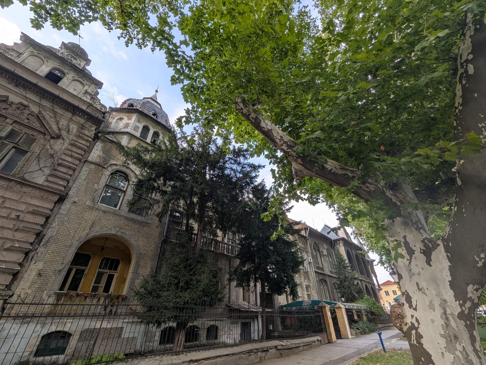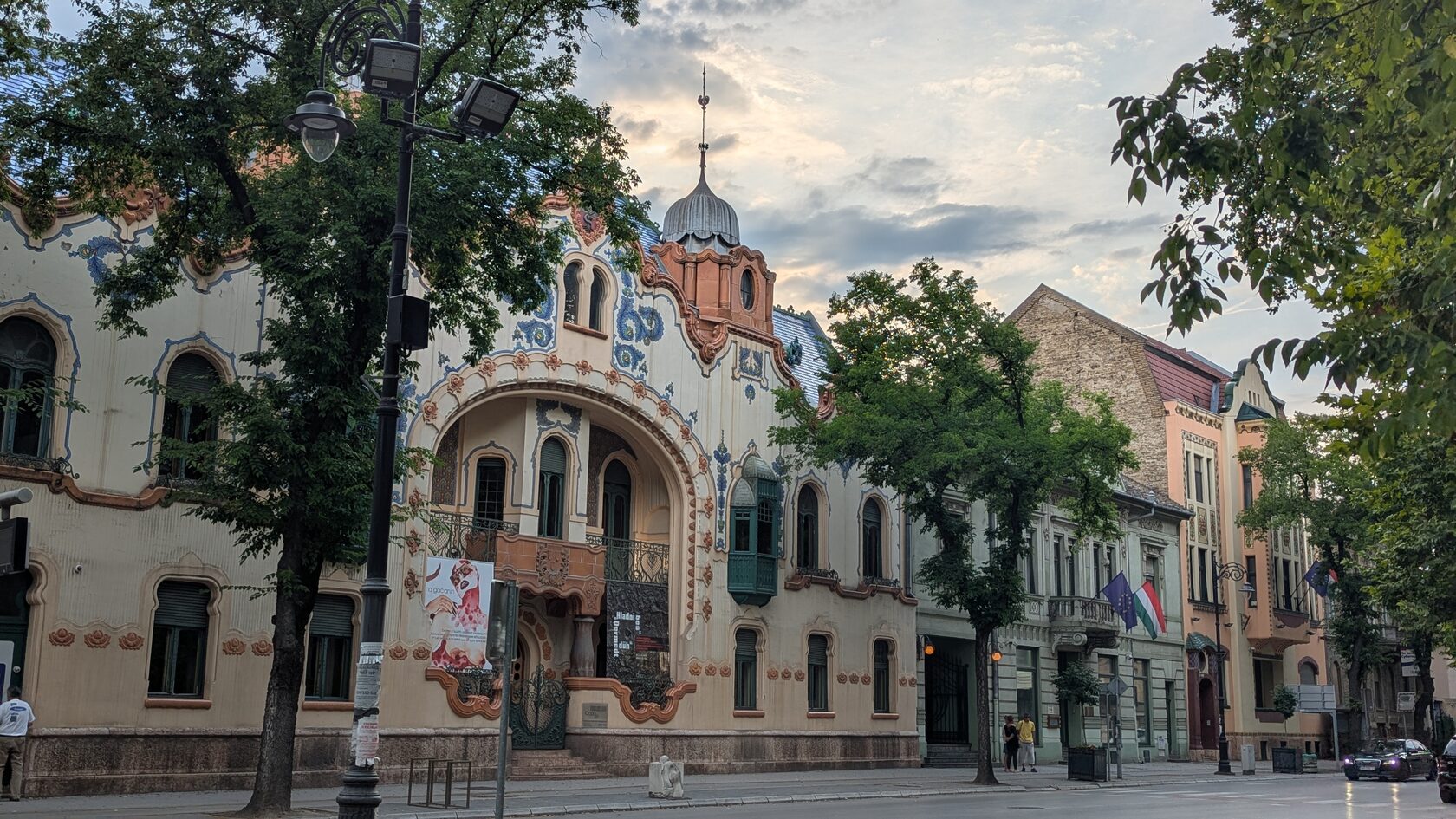 Но кроме господствующего и самого заметного венгерского сецессиона с народными мотивами здесь есть здания модерна и в других направлениях этого стиля.