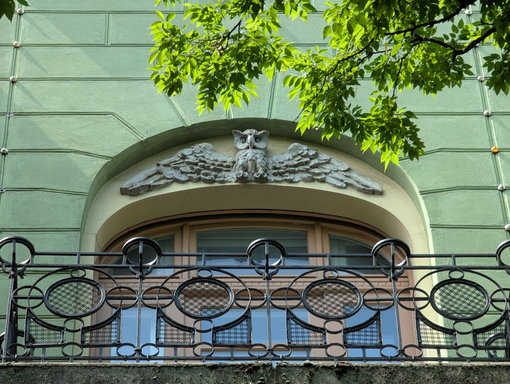 Но стоит обратить внимание на элементы модерна: асимметрию, омега-образное окно первого этажа, волнисто-округлые арки и барельефы с растительными мотивами над окнами и вдоль карниза