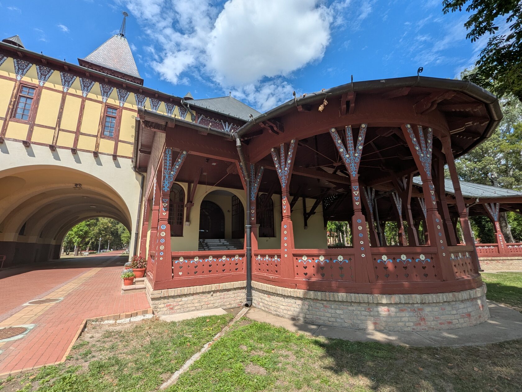 Получилась своеобразная венгерская "сецессия": на основе элементов и декора народной культуры Трансильвании и Баната, их деревенских домов и праздничных украшений в обработке и с возможностями нового стиля.
