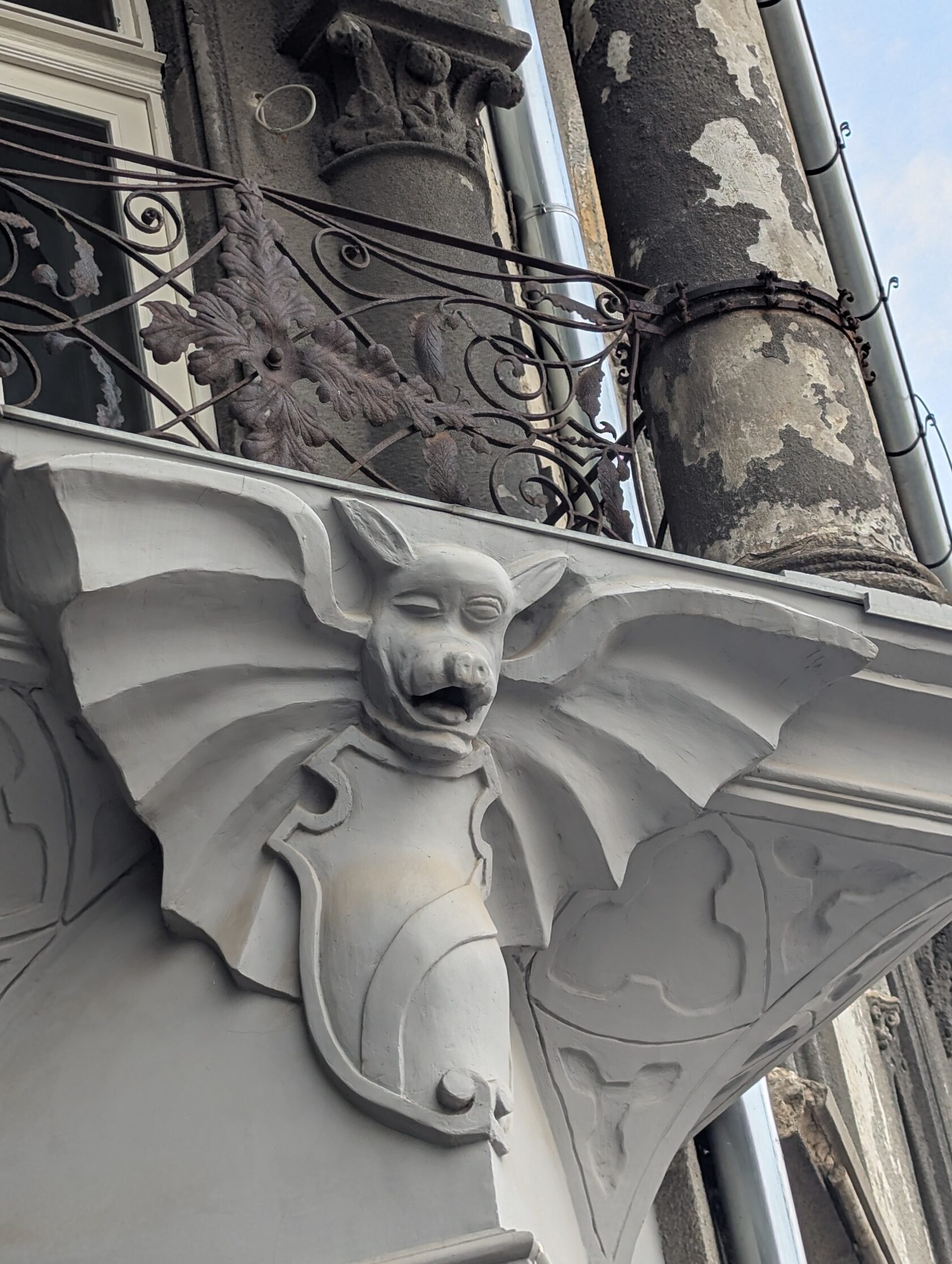 И на летучую мышь над его угловым входом