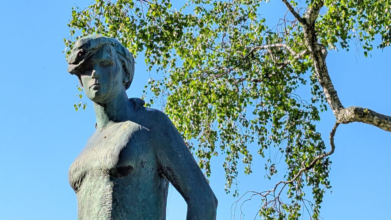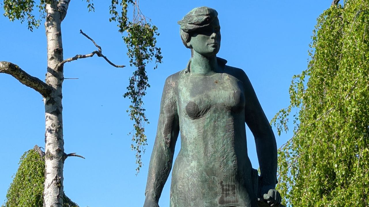 Рядом скульптура Юлиуса Фучика и ещё одной чешской коммунистки.