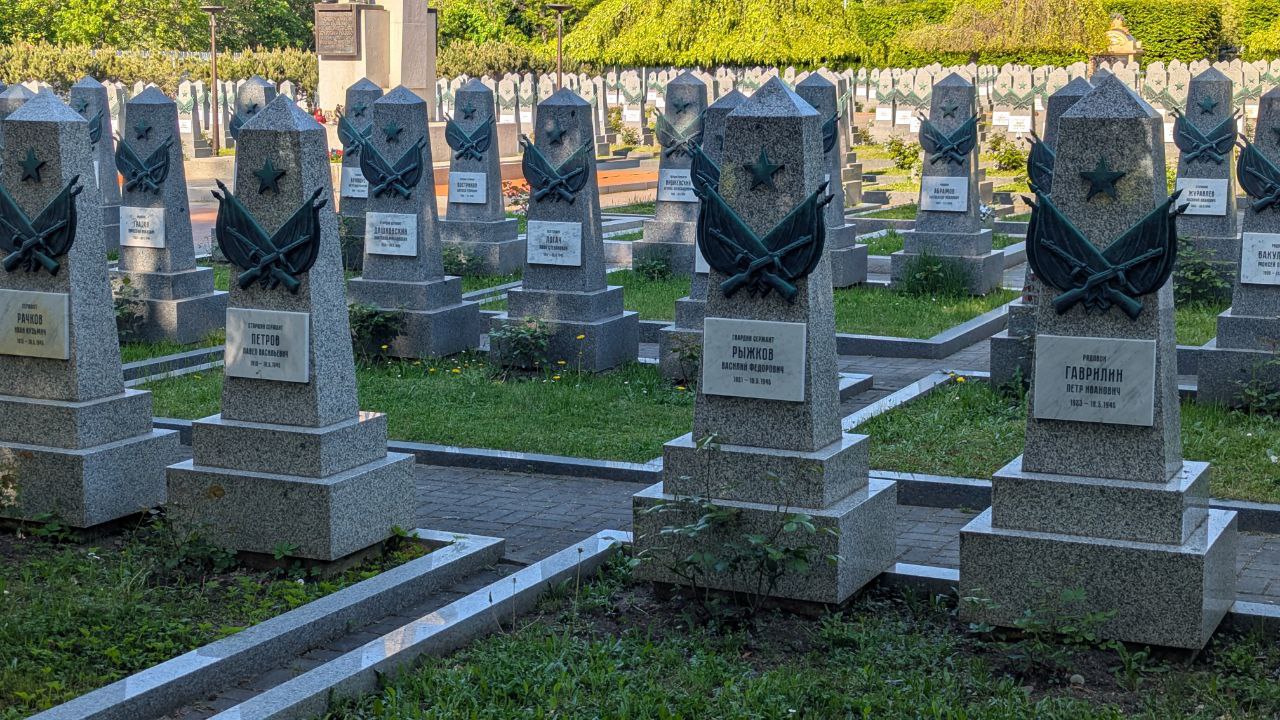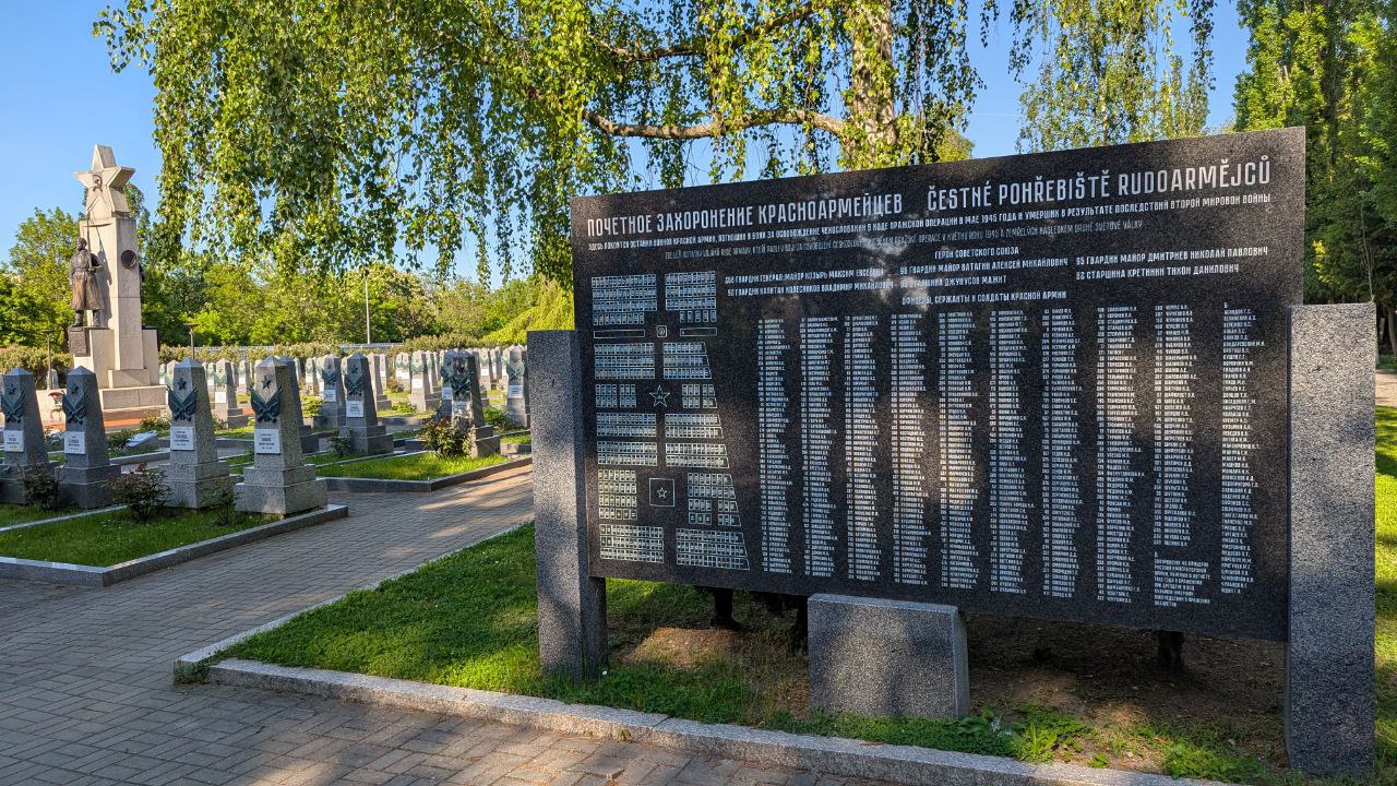На другом краю кладбища братское захоронение красноармейцев, погибших в при освобождении города во время Пражской операции сорок пятого года.