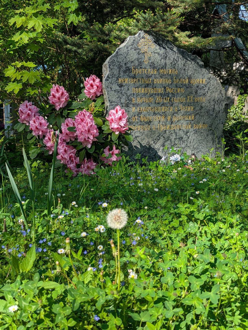 И рядом с церковью - памятный камень и небольшая часовня над братской могилой умерших здесь белогвардейцев.