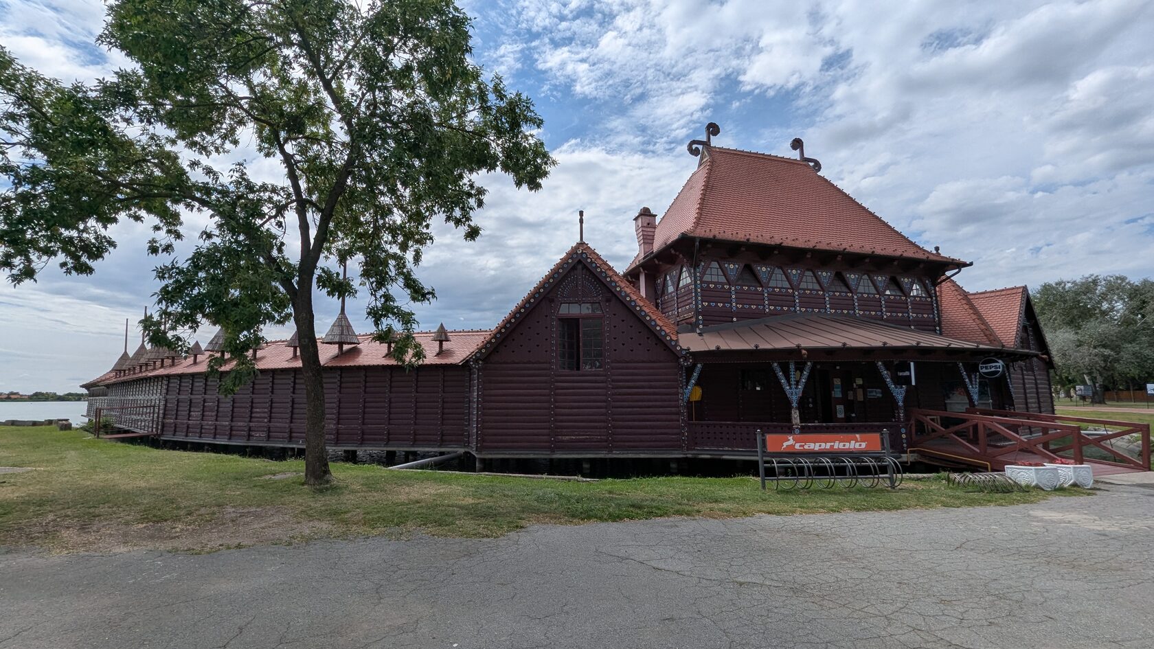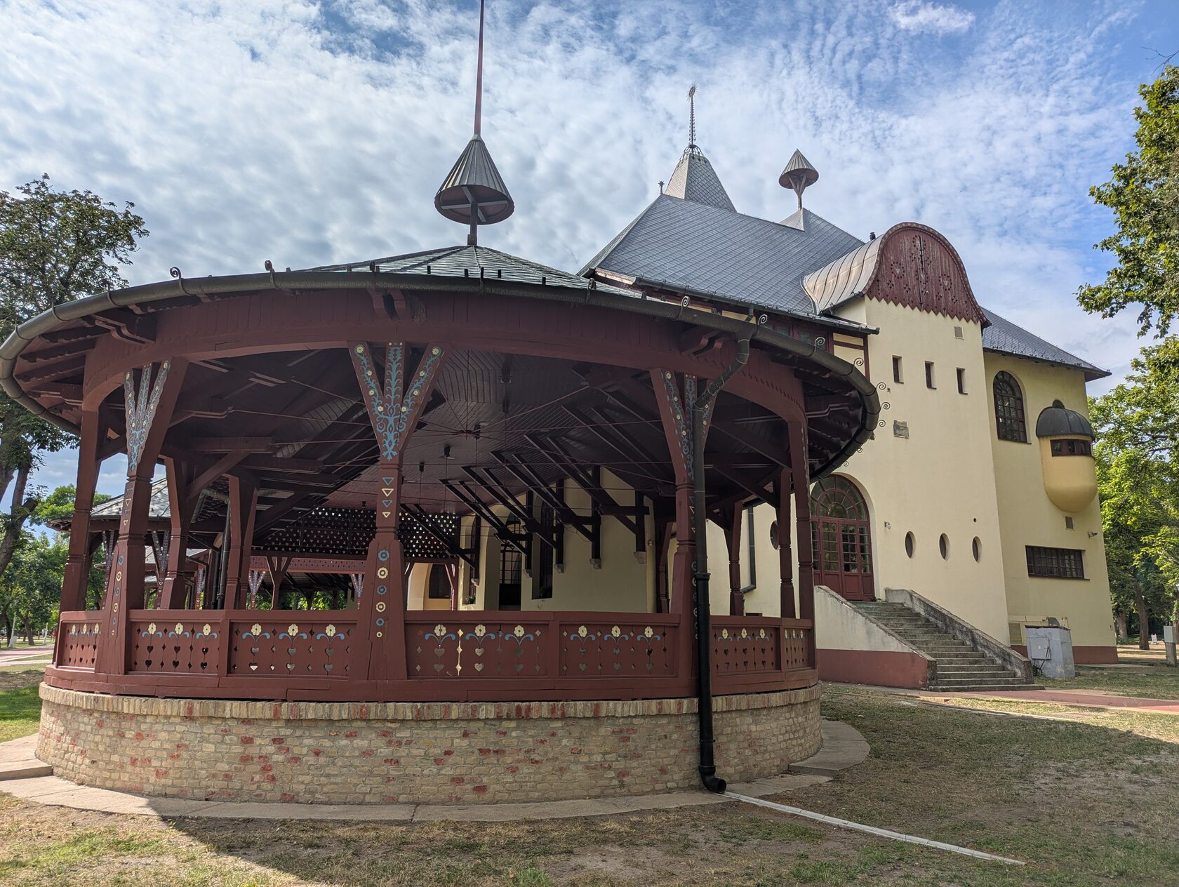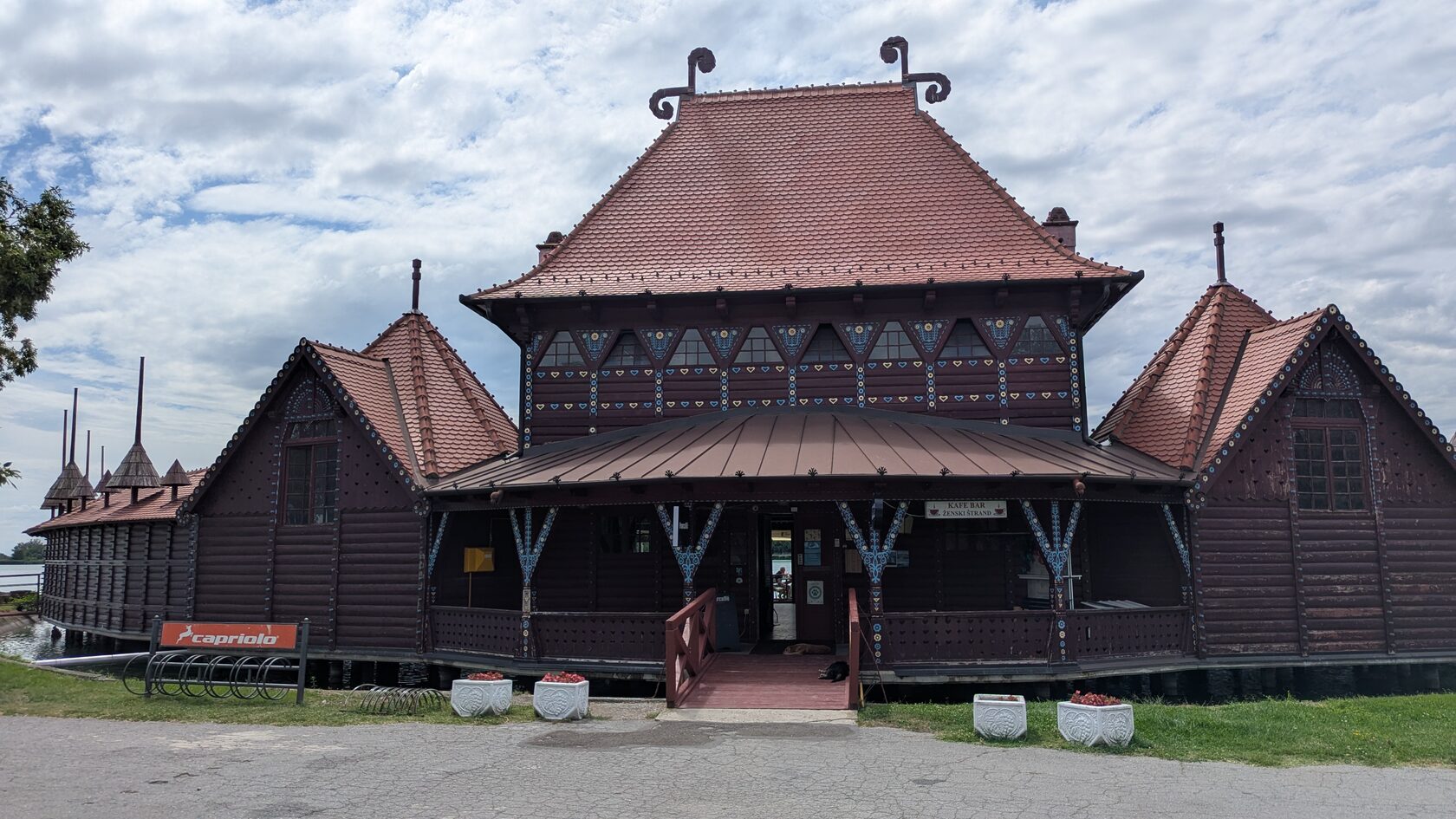 И правее на берегу озера - женский пляж. Тех же авторов и в этом же стиле сецессии, включающей в себя народные мотивы венгерской Трансильвании.