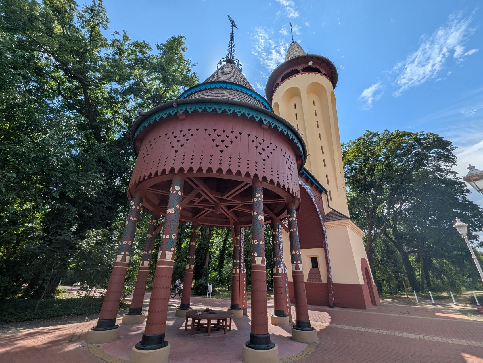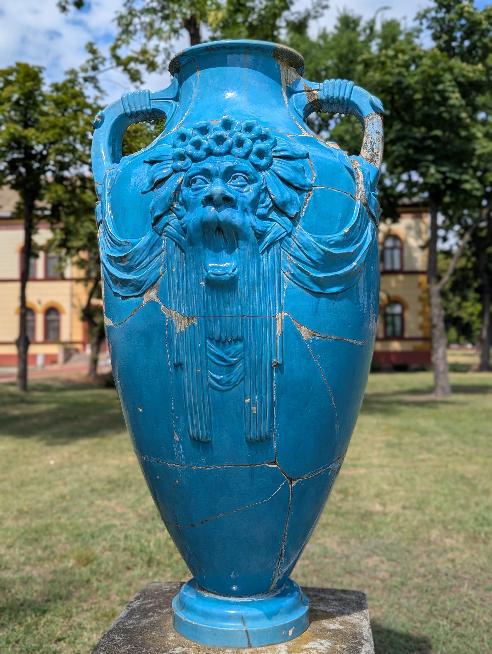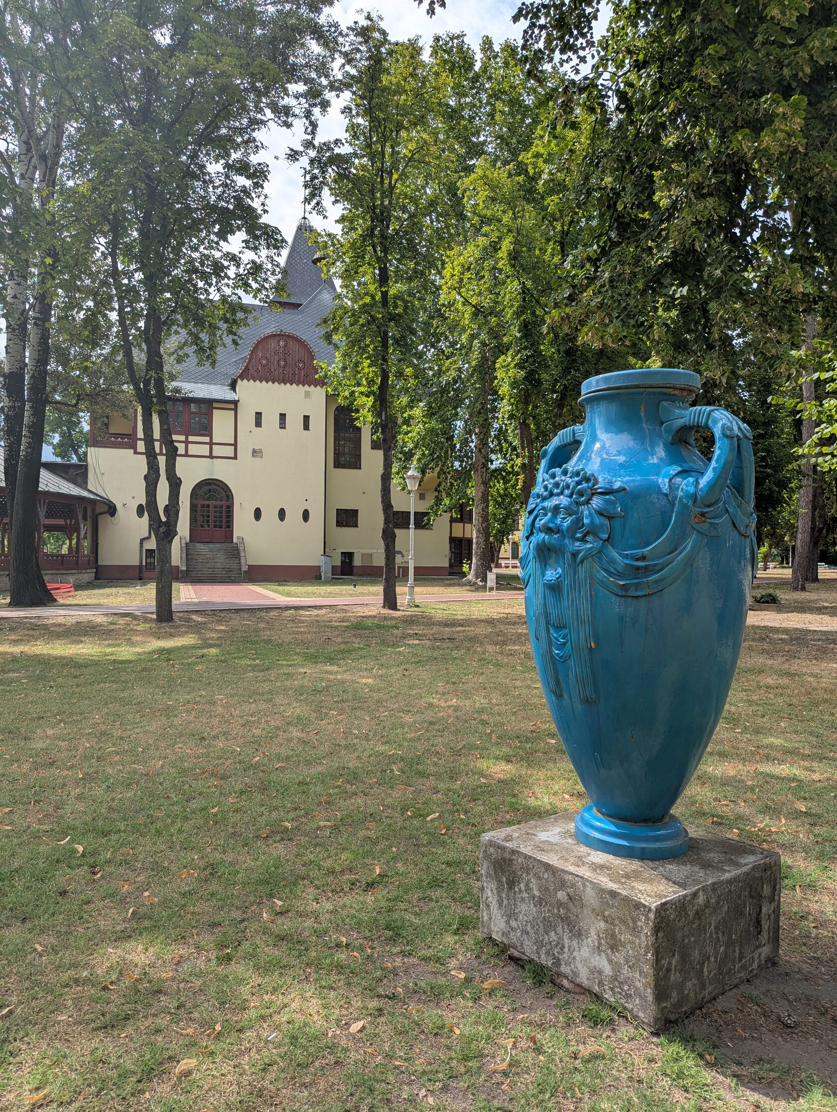 Две большие голубые вазы из Жолнаи керамики, изображающие Бога воды, стоят в парке, по краям от Большой террасы перед двумя гостиницами, выстроенными уже другими архитекторами, гармонично дополняющими стильный комплекс. В 1910-ом году владелец завода керамики Жолнаи в Пече подарил эти вазы городу Суботице.