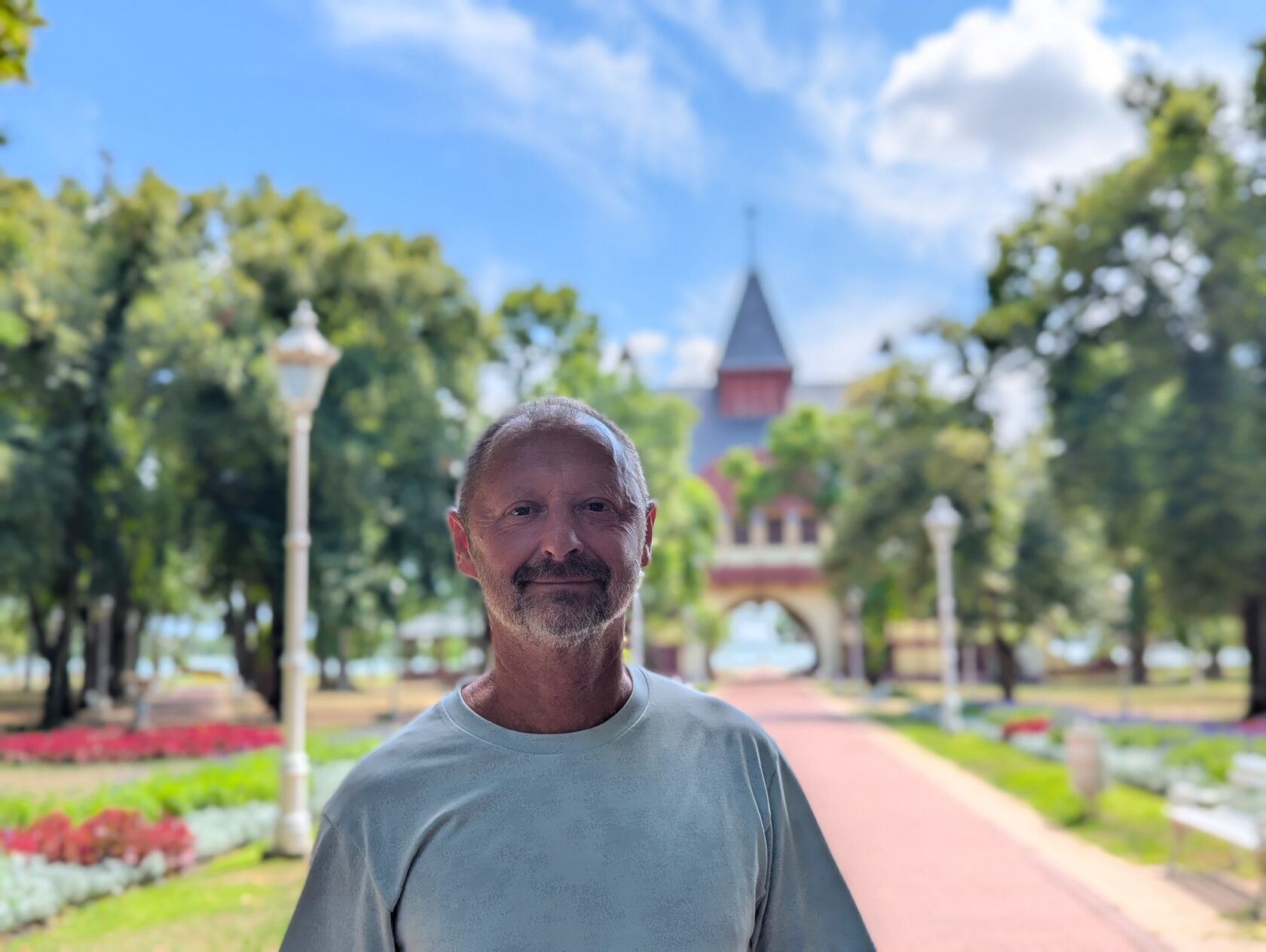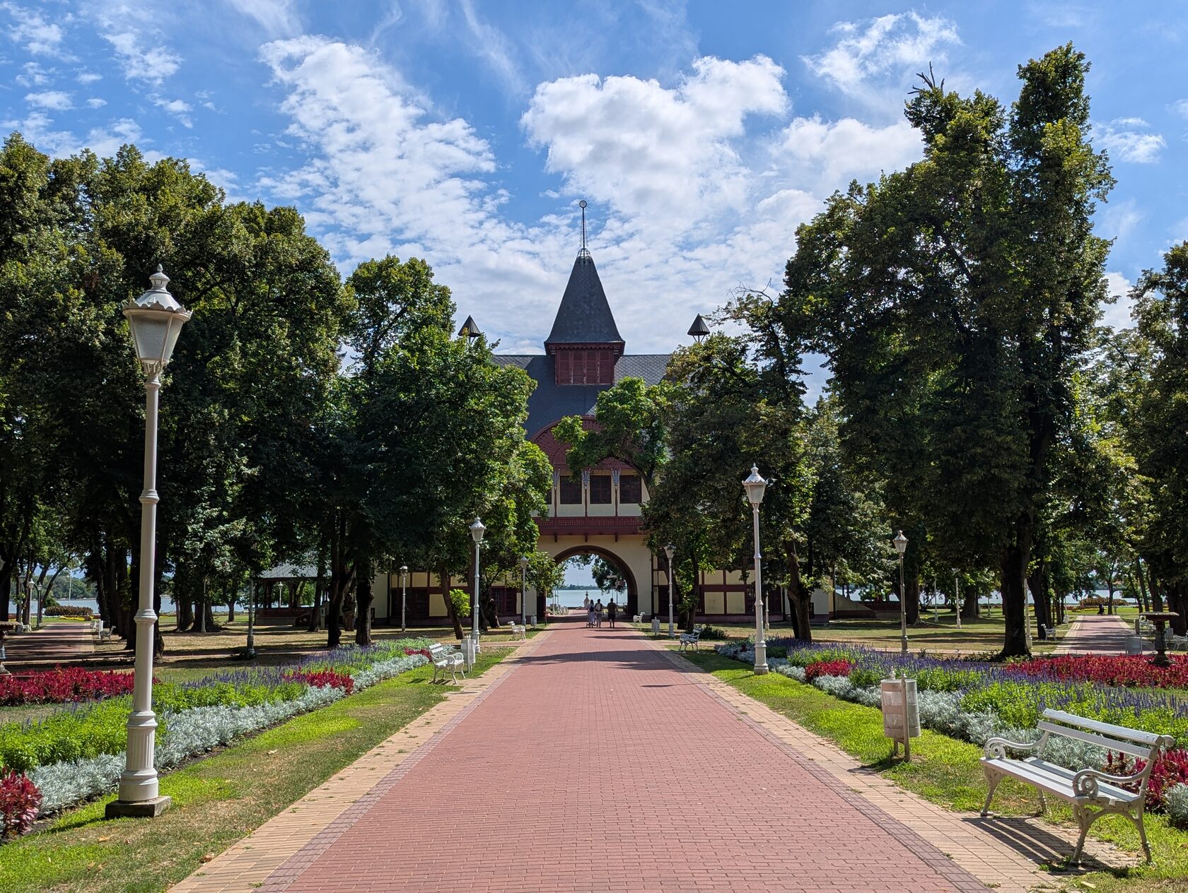 Стильная центральная аллея ведёт к озеру и зданиям на его берегу