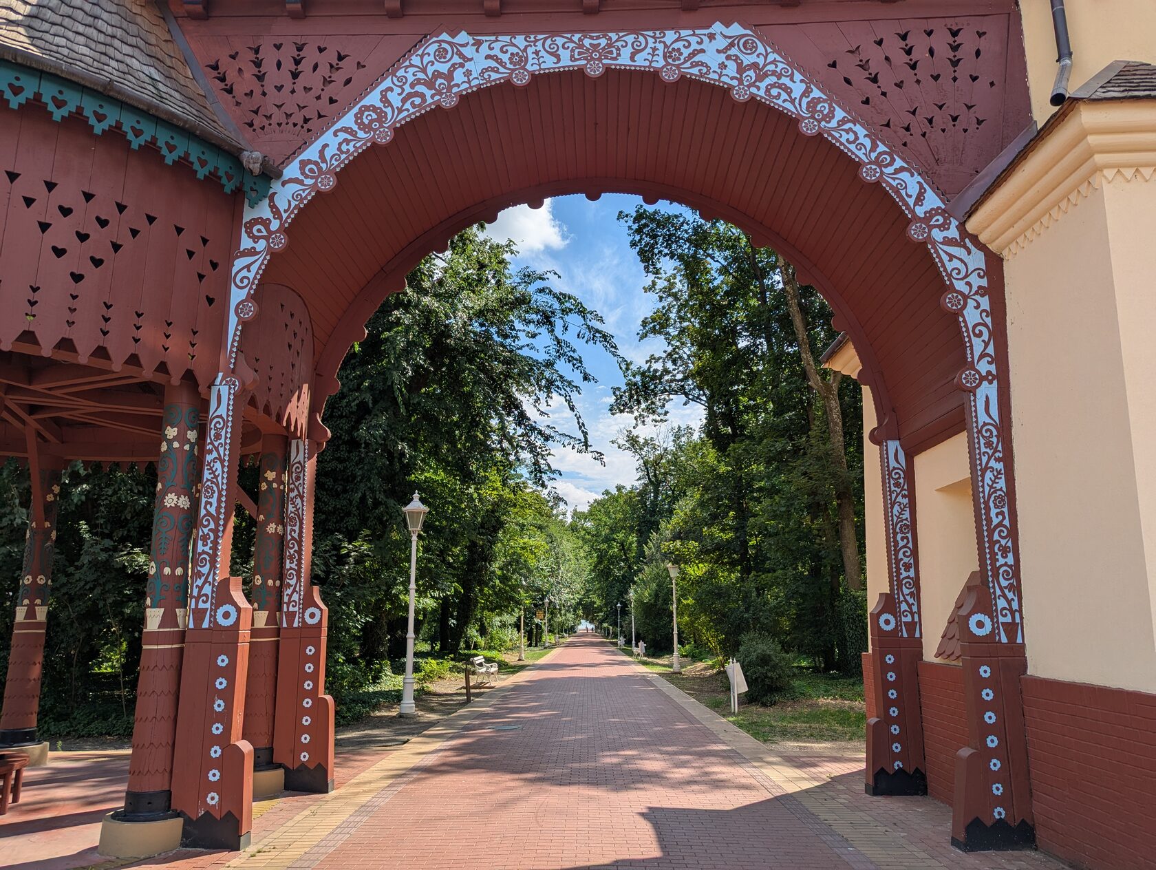 Так как архитекторы смогли осуществить свой замысел и создали целостный курортный и архитектурный комплекс в стиле "сецессии" (местного модерна в венгерском духе), то стоит его увидеть в том порядке, как задумано авторами.